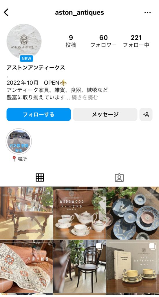 アストンアンティークス、Instagram始めました🌸
