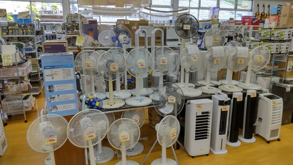 修善寺店では暑い夏に備えて早めに扇風機・冷風扇を仕入れいたしました!